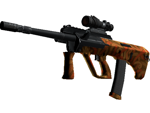 Powerful and accurate, the AUG scoped assault rifle compensates for its long reload times with low spread and a high rate of fire. An orange pattern depicting Jörmungandr, the World Serpent, has been applied.